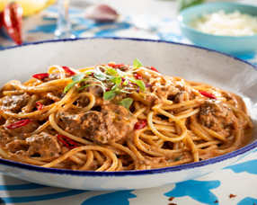 Chicken Liver Spaghetti 149 Chicken livers in a creamy Napoletana sauce. Tossed in spaghetti & topped with Parmesan cheese.